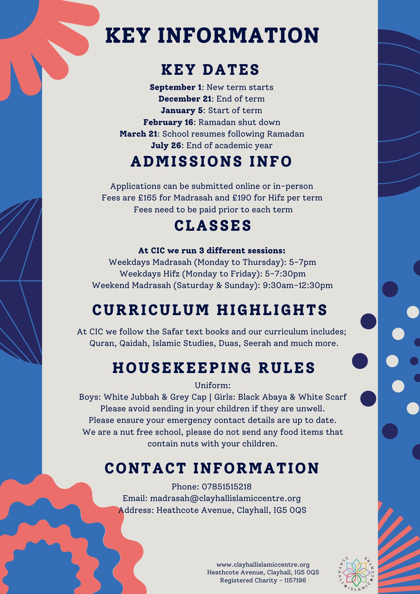At CIC, students go beyond mastering Qaida and Quran. They also study Duas, Aqidah, Salah, Fiqh, Seerah, Hadith, Prophetic Stories, Islamic History, and much more.